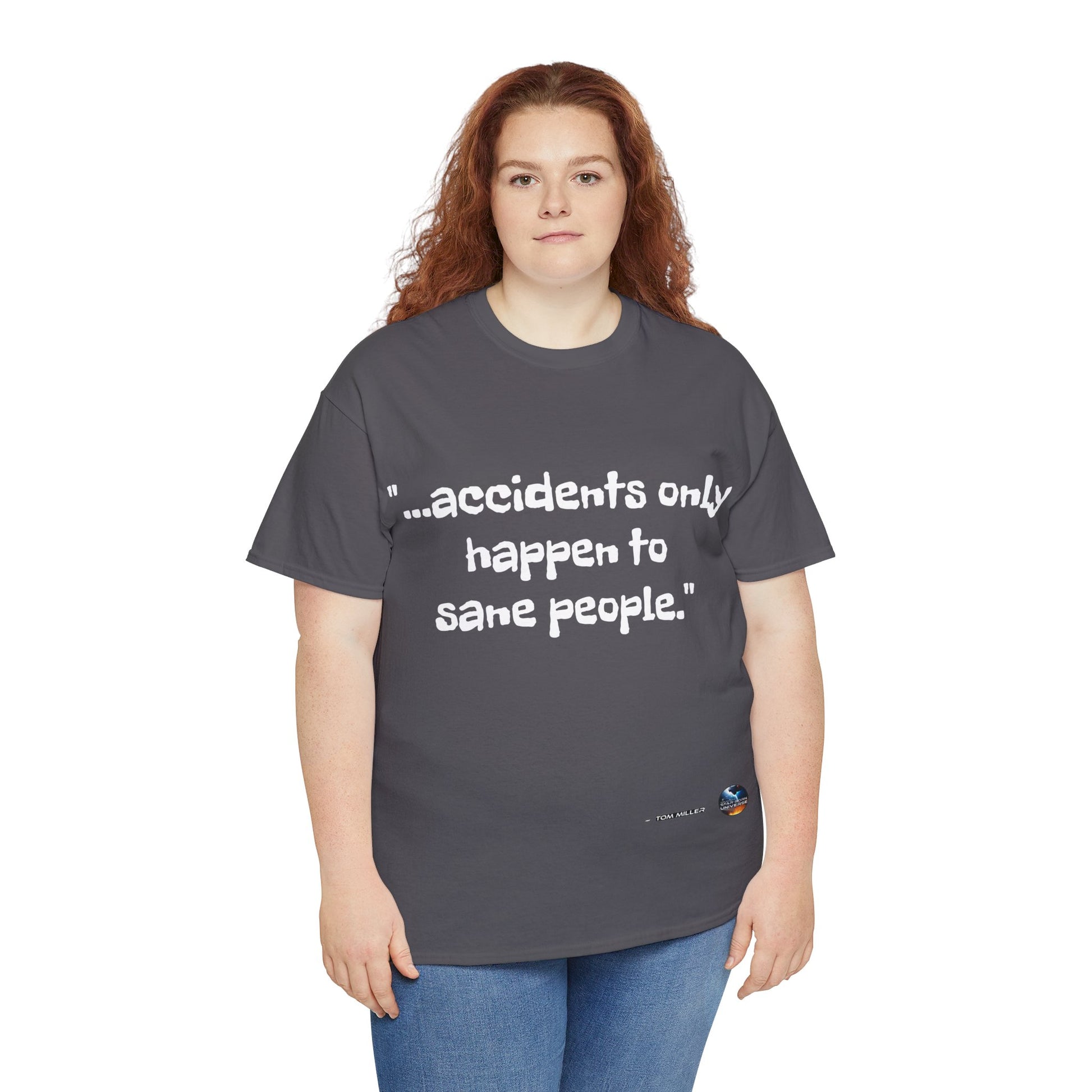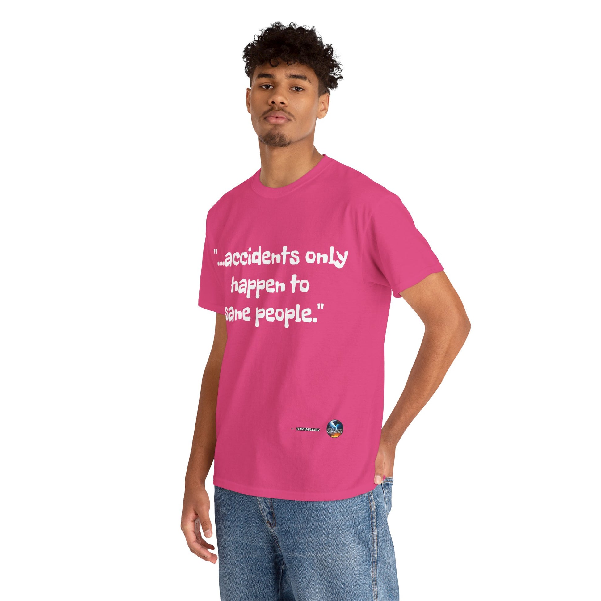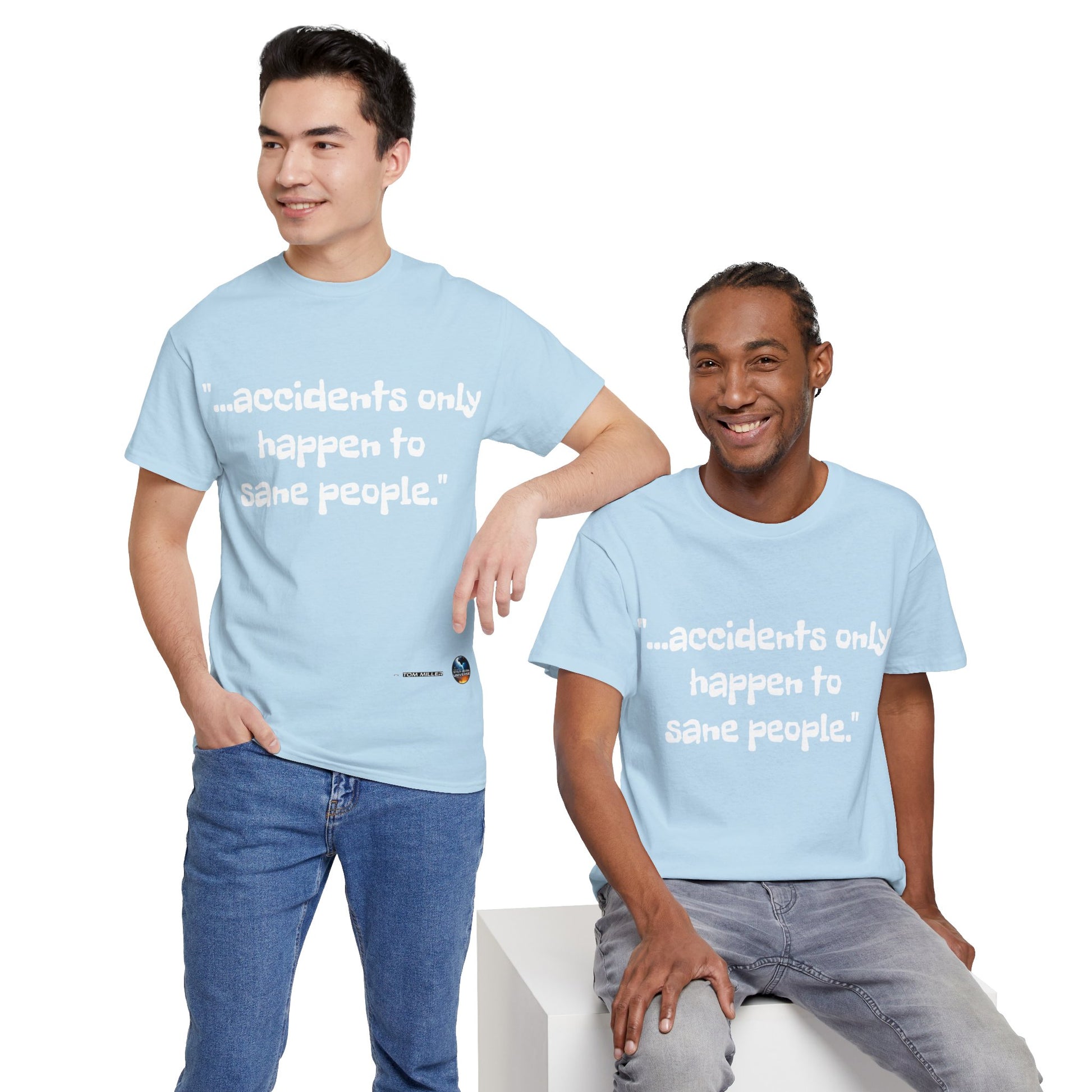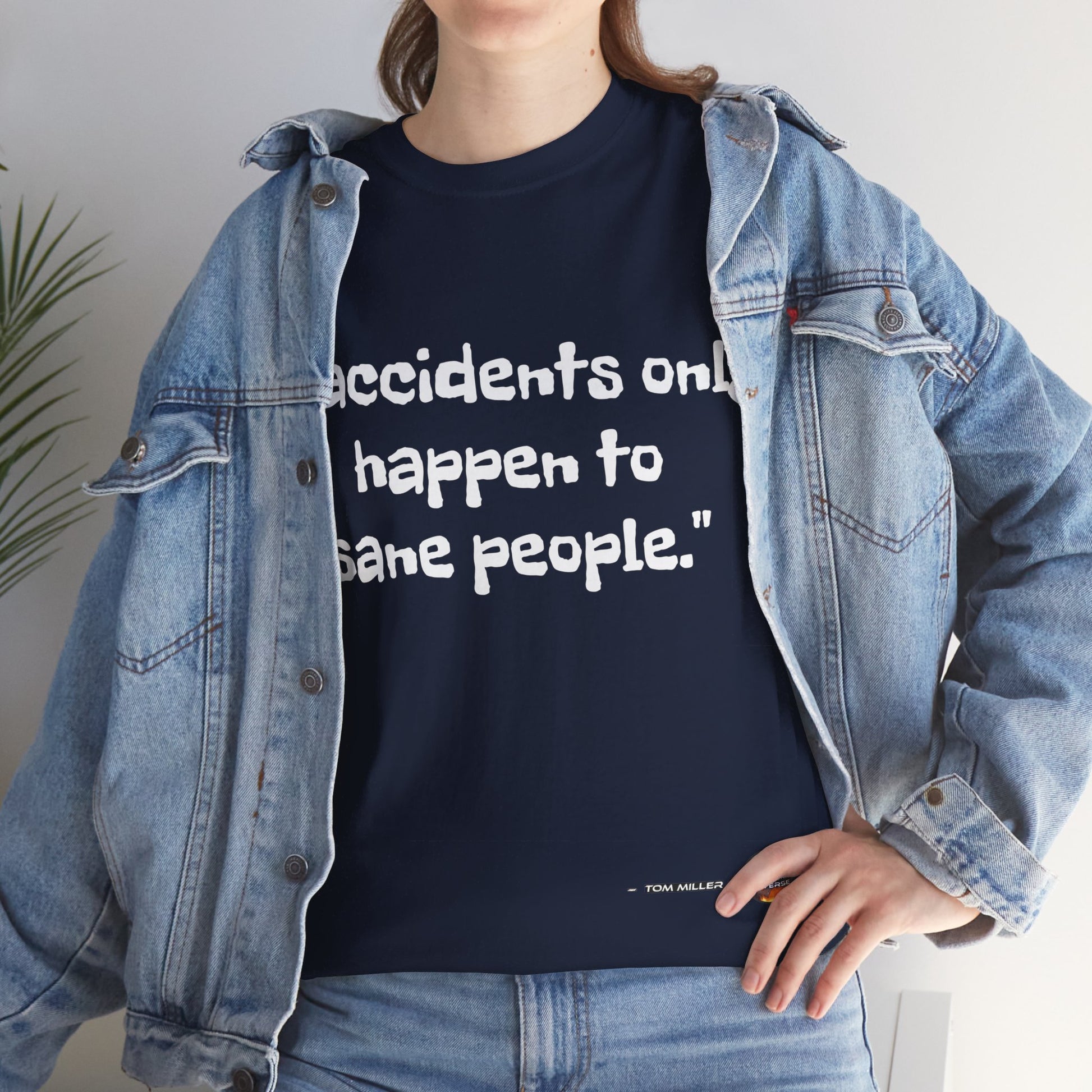 This heavy cotton tee is the basic staple of any wardrobe. It is the foundation upon which casual fashion grows. And it's got you covered in more ways than one. In this tee you're either not suffering accidents, or, you're proving your sanity. All it needs is a person willing to be seen as someone thinking differently. The specially spun fibers provide a smooth surface for people who try rubbing you up the wrong way, or the right way. So what are you waiting for? This t-shirt isn't going to find you by accident;)