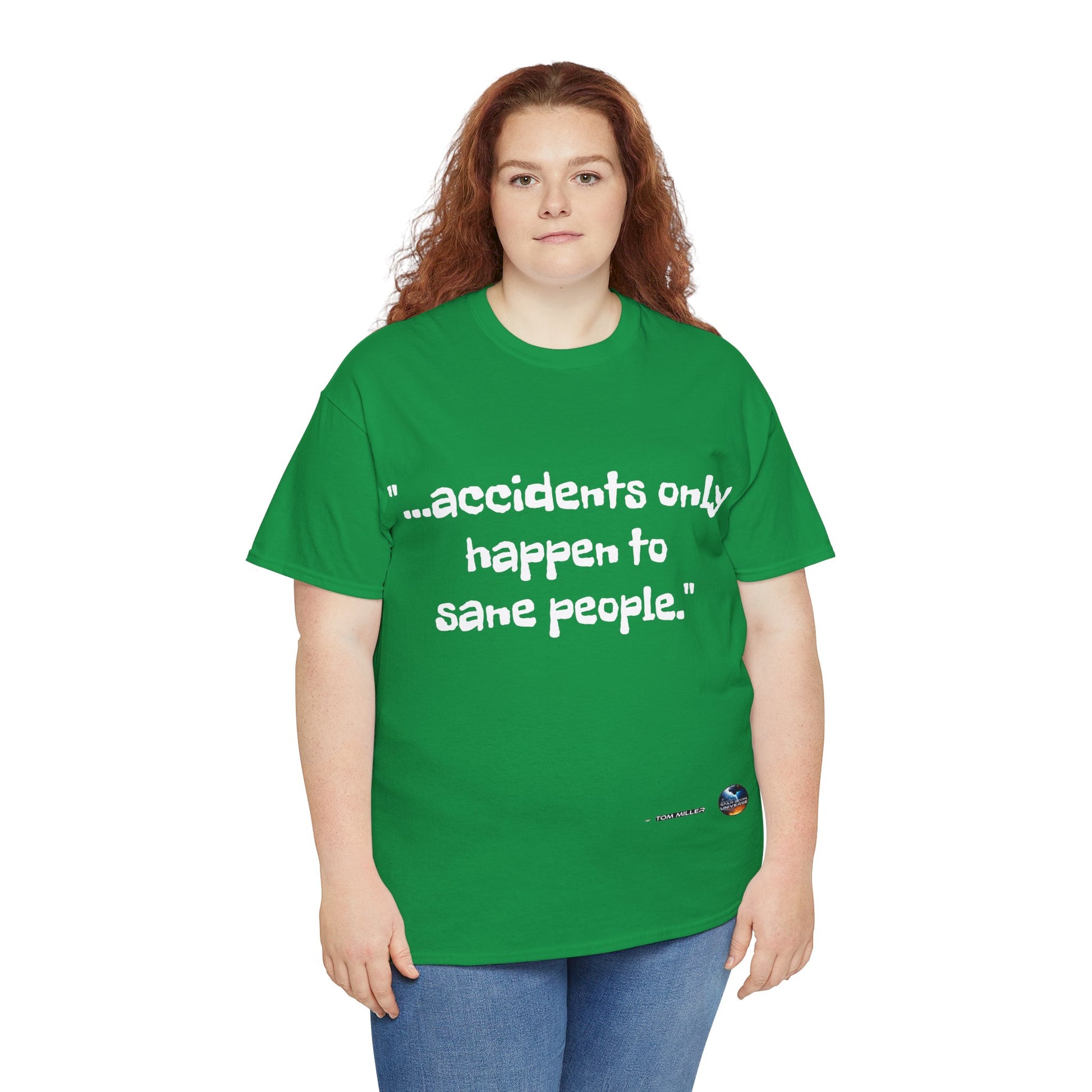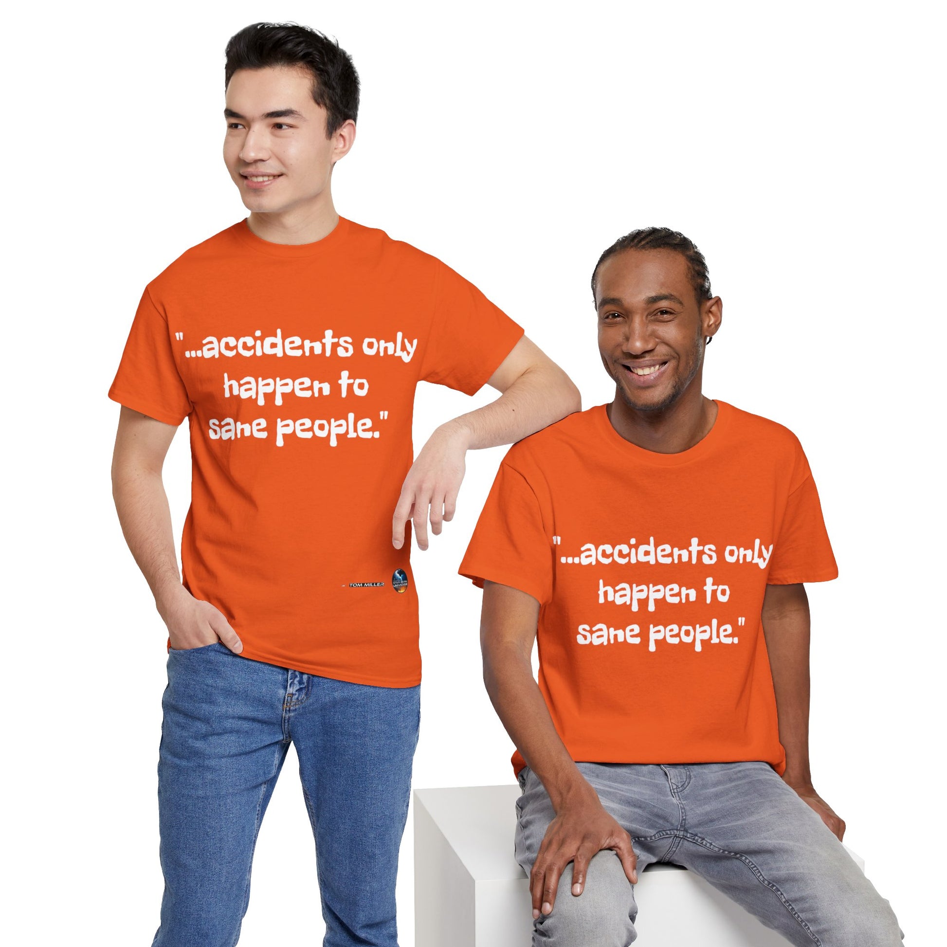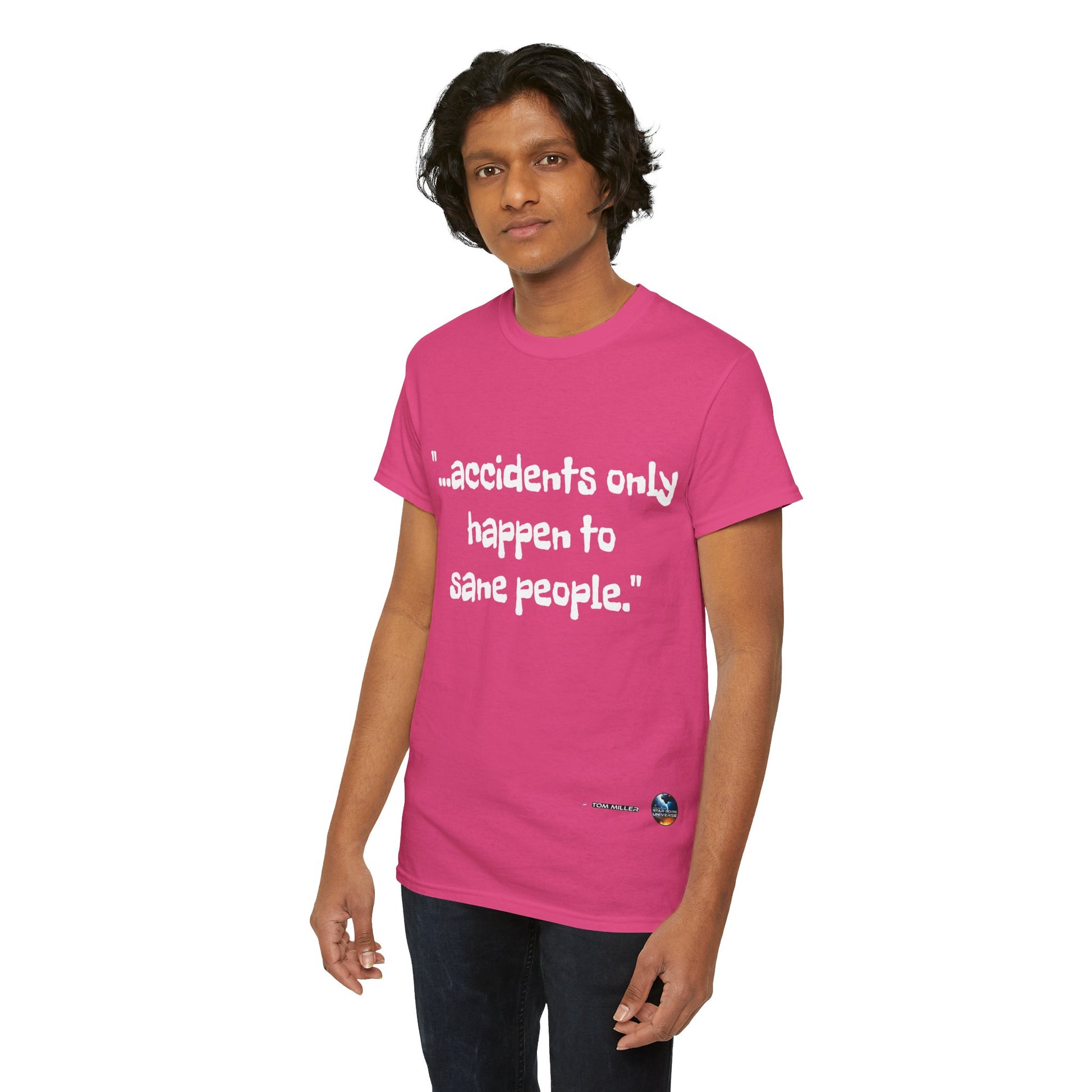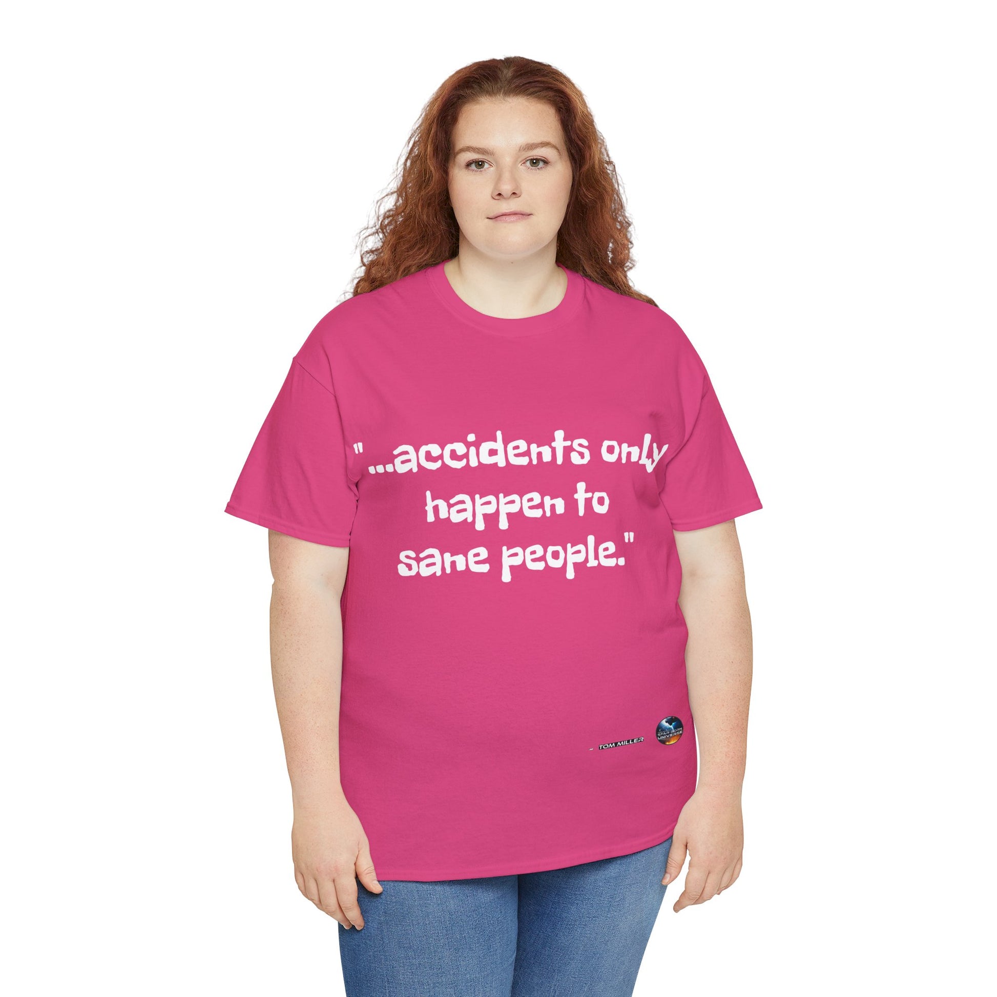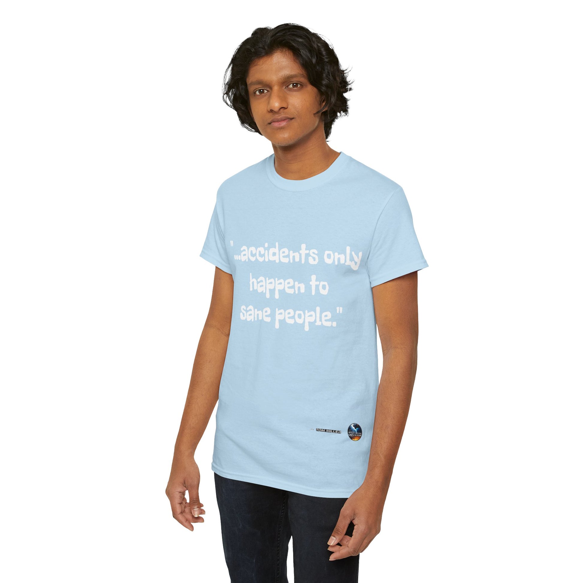 This heavy cotton tee is the basic staple of any wardrobe. It is the foundation upon which casual fashion grows. And it's got you covered in more ways than one. In this tee you're either not suffering accidents, or, you're proving your sanity. All it needs is a person willing to be seen as someone thinking differently. The specially spun fibers provide a smooth surface for people who try rubbing you up the wrong way, or the right way. So what are you waiting for? This t-shirt isn't going to find you by accident;)